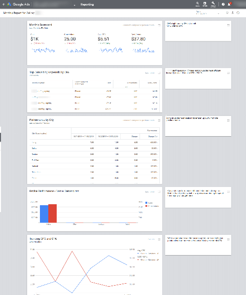 Think of Dashboards as a similar offering right inside Google Ads. You can build highly-visual, custom reports that allow you and your clients to digest important information on an ad hoc or routine basis. As an added bonus, any pre-existing reports saved in your account can be added to a dashboard report as well.